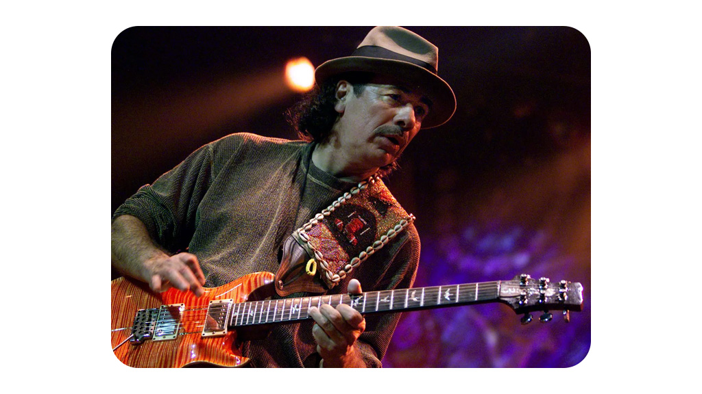 نوازندگی گیتاریست مشهور کارلوس سانتانا (Carlos Santana)، توسط بسیاری از افراد با صفتهایی همچون «روحانی» و «فراانسانی» توصیف شده است. او به گیتاریستها توصیه میکند که با آنچه درون خود دارند، ارتباط برقرار کنند و از موسیقی بهعنوان وسیلهای برای ابراز انرژیهای روحانی درونی خود بهره بگیرند.