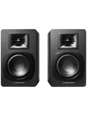 The compact AT-SP3X powered bookshelf speakers are specially tuned to deliver impressive, full-range audio for an elevated listening experience in any room. The speakers are designed to connect directly to a turntable or other device (via an RCA audio cable or Bluetooth wireless technology), requiring no external receiver or amplifier. Powered by an included AC adapter and joined by a long 6.6′ (2.0 m) speaker cable, the speakers are easy to set up in any space.