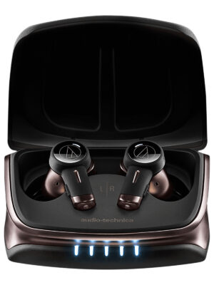 The ATH-TWX9 truly wireless earbuds offer the freedom to customize your sound space for an advanced audio experience. These headphones create an immersive audio experience and feature digital hybrid noise canceling technology. With unique features including deep-UV sterilization, 360 Reality Audio for a realistic 3D sound stage, and Snapdragon Sound™ platform for higher quality music, video, and calls, the ATH-TWX9 set themselves above the rest as the best truly wireless headphones.