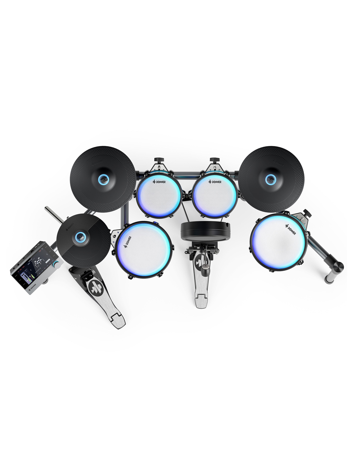 Allowing users to customize drum pad colors, this electronic drum set offers a unique appearance tailored to each individual. Additionally, it can sync with the app to generate different lighting effects for enhanced performance feedback.