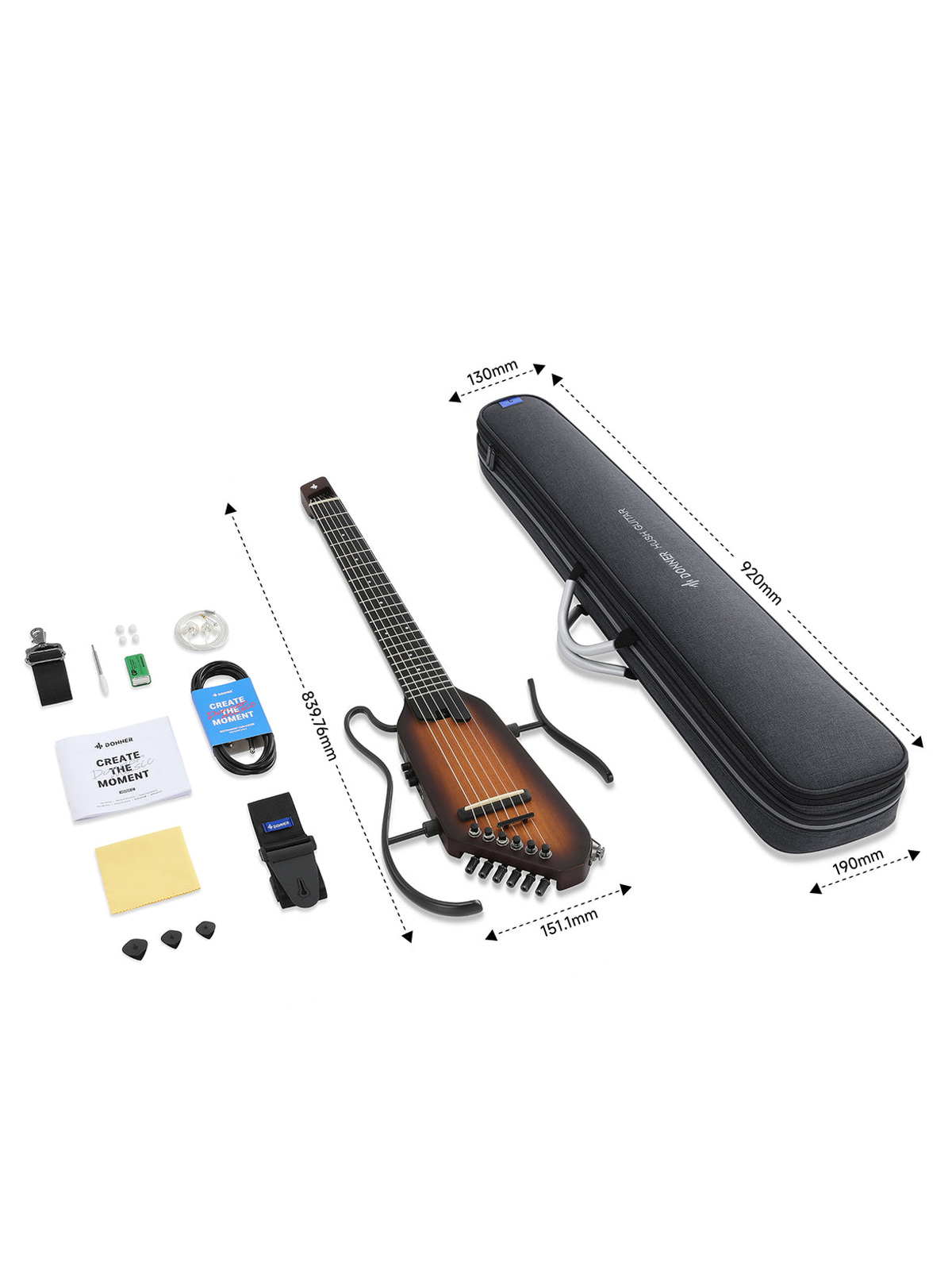 تا اینجای کار، احتمالاً شما هم مثل ما به این نتیجه رسیدهاید که با یک محصول بسیار ارزشمند روبرو شدهاید؛ اما دانر به این نیز بسنده نکرده است و گیتار سیم نایلونی HUSH-C را به همراه مجموعهای از لوازم جانبی کاربردی، از جمله کیف گیتار، استرپ گیتار، ایرفون مانیتورینگ، پیک، کابل و باتری به دست شما میرساند تا به هیچ چیز دیگری برای تمرین و نوازندگی نیازی نداشته باشید!