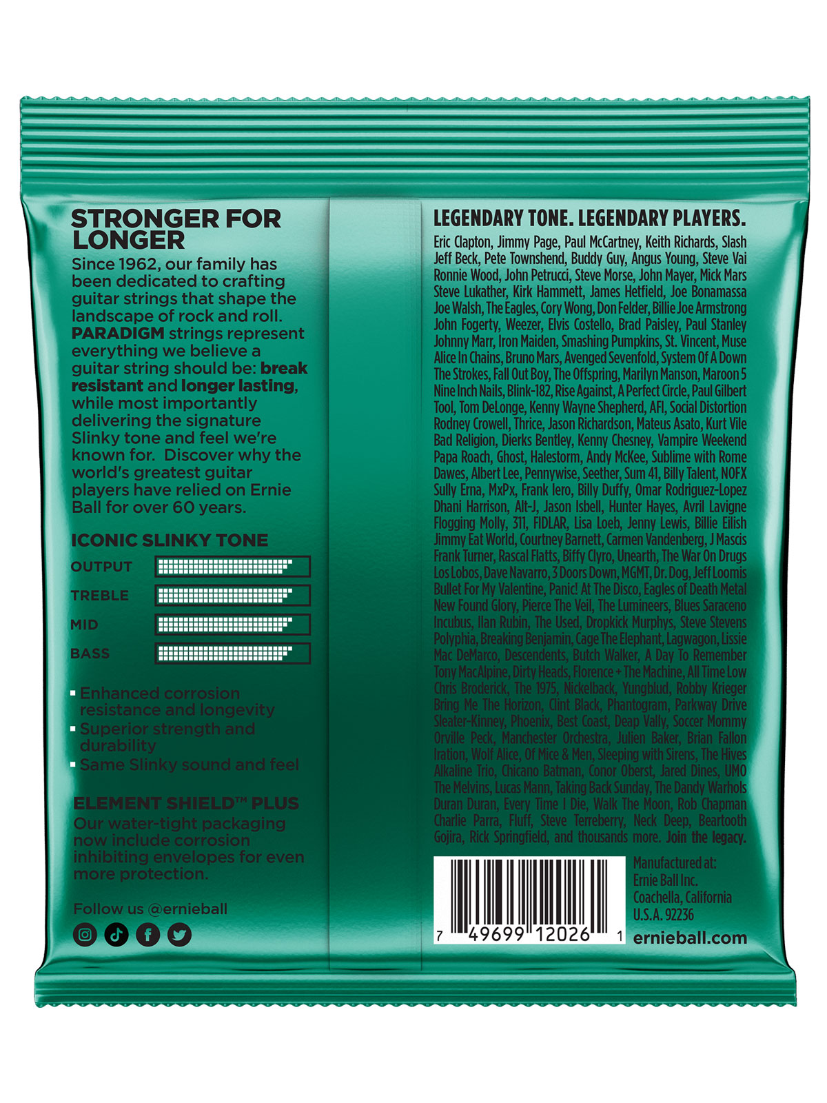 سیمهای گیتار الکتریک Slinky Paradigm شرکت ارنی بال، ضمن حفظ صدا و حس مشهور مدل Slinky، دوام و عمر طولانیتری به ارمغان میآورند.