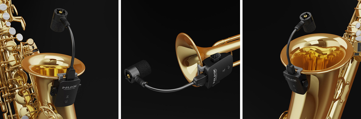 سیستم میکروفون بیسیم NUX B-6 Pro بهطور خاص برای نصب بر روی سازهای بادی برنجی و چوبی همچون ساکسوفون و ترومپت طراحی شده است و چالشهایی که نوازندگان این قبیل سازها برای ضبط و پخش صدای ساز خود در اجراهای زنده با آن مواجه میشوند را بهکلی حل میکند.