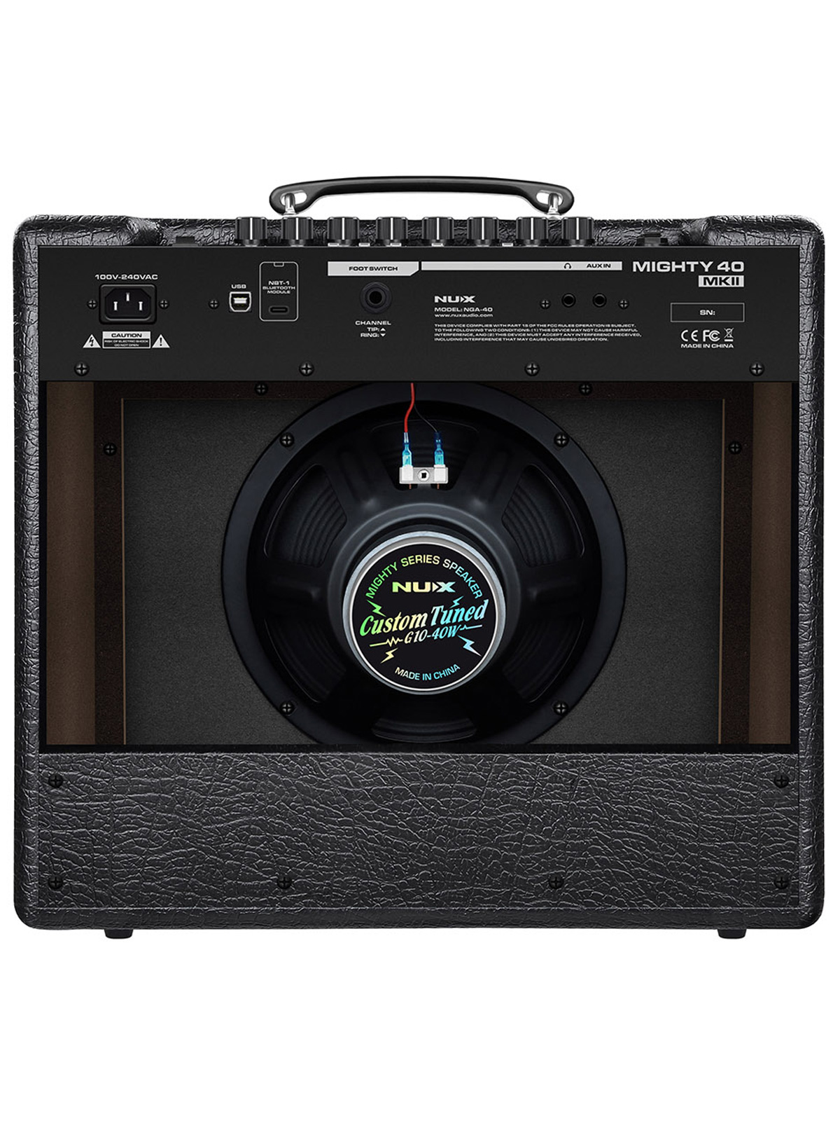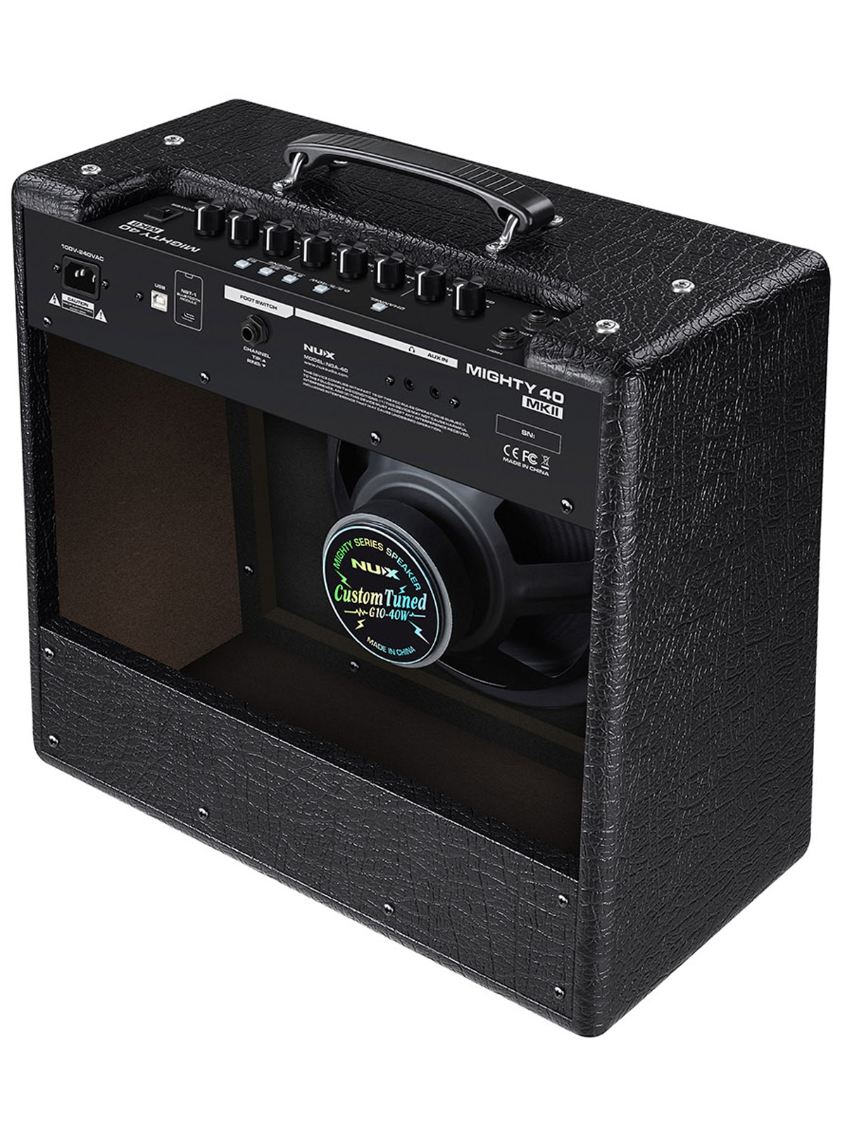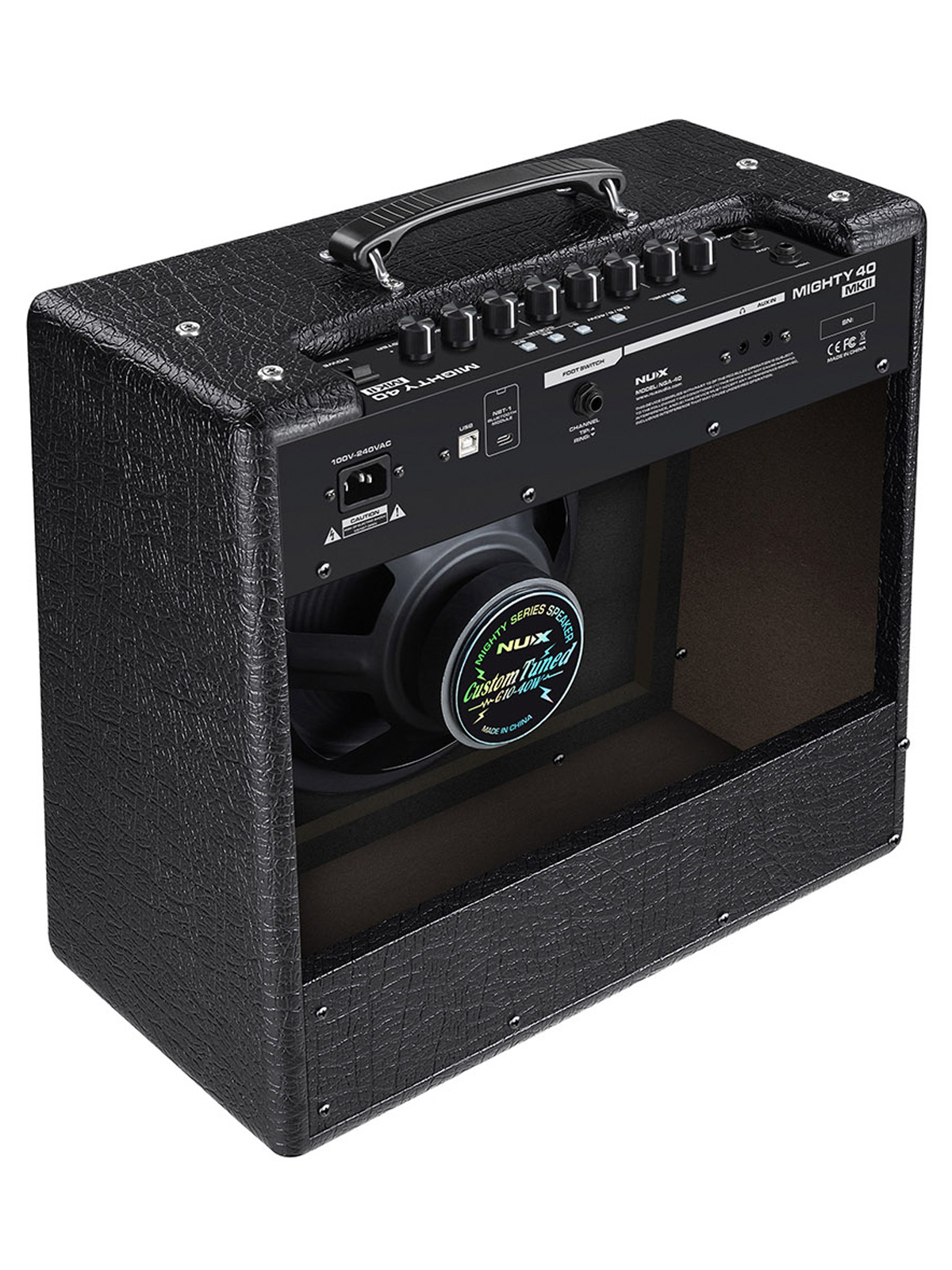 NUX Mighty 40 MKII به یک اسپیکر ۱۰ اینچی از نوع G10-40W مجهز است و با قابلیتهای مادلینگ و افکتهای داخلی خود، به شما امکان طراحی تنهایی بسیار بدیع و جذاب را میدهد.